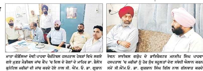 ਲੁਧਿਆਣਾ – ਮਾਤਾ ਕੌਸ਼ਲਿਆ ਦੇਵੀ ਪਾਹਵਾ ਹਸਪਤਾਲ, ਹਮਬੜਾਂ (ਜੋ ਕਿ Christian Medical College & Hospital, Ludhiana ਦੀ ਇਕ ਸ਼ਾਖਾ ਹੈ) ਵਿੱਚ ਇੱਕ ਮੁਫ਼ਤ ਦਿਲ ਅਤੇ ਮੈਡੀਕਲ ਸਿਹਤ ਜਾਂਚ ਕੈਂਪ ਦਾ ਆਯੋਜਨ ਕੀਤਾ ਗਿਆ। ਇਹ ਕੈਂਪ Mr. ਓਂਕਾਰ ਸਿੰਘ ਪਾਹਵਾ (Managing Director – ਐਵਨ ਸਾਈਕਲਜ਼) ਦੀ ਅਗਵਾਈ ਹੇਠ ਲਗਾਇਆ ਗਿਆ।