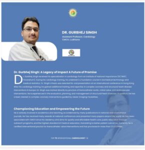 ਲੁਧਿਆਣਾ, — ਕਰਿਸਚਨ ਮੈਡੀਕਲ ਕਾਲਜ ਅਤੇ ਹਸਪਤਾਲ (CMC), ਲੁਧਿਆਣਾ ਦੇ ਡਾ. ਗੁਰਭੇਜ ਸਿੰਘ, ਅਸਿਸਟੈਂਟ ਪ੍ਰੋਫੈਸਰ, ਵਿਭਾਗ ਕਾਰਡੀਓਲੋਜੀ, ਨੇ ਆਪਣੀ ਮਿਹਨਤ, ਵਿਦਵਤਾ ਅਤੇ ਦਿਲ ਦੇ ਰੋਗਾਂ ਦੀ ਅਗੇਤੀ ਥੈਰੇਪੀਜ਼ ਵਿੱਚ ਨਵੀਂ ਸੋਚ ਨਾਲ ਆਪਣੇ ਲਈ ਵਿਲੱਖਣ ਪਛਾਣ ਬਣਾਈ ਹੈ।