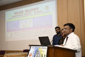 20 ਮਾਰਚ ਨੂੰ ਮਨਾਇਆ ਜਾਣ ਵਾਲਾ ਵਰਲਡ ਹੈਡ ਇੰਜਰੀ ਅਵੇਰਨੈੱਸ ਡੇ ਇਸ ਸਾਲ “My Brain Injury Journey” ਥੀਮ ਹੇਠ ਮਨਾਇਆ ਗਿਆ, ਜਿਸ ਵਿੱਚ ਮਰੀਜ਼ਾਂ ਦੇ ਤਜ਼ਰਬਿਆਂ ਅਤੇ ਉਨ੍ਹਾਂ ਦੀ ਠੀਕ ਹੋਣ ਦੀ ਯਾਤਰਾ ‘ਤੇ ਧਿਆਨ ਕੇਂਦ੍ਰਿਤ ਕੀਤਾ ਗਿਆ। ਪ੍ਰੋਗਰਾਮ ਵਿੱਚ ਇੱਕ ਨਾਟਕ ਰਾਹੀਂ ਜਾਗਰੂਕਤਾ ਫੈਲਾਈ ਗਈ, ਜਾਣਕਾਰੀ ਭਰਪੂਰ ਲੈਕਚਰ Dr. Moloti ਵੱਲੋਂ ਦਿੱਤਾ ਗਿਆ ਅਤੇ ਇੰਟਰੈਕਟਿਵ ਕੁਇਜ਼ Dr. Pallavi, Dr. Krithika ਅਤੇ ਉਨ੍ਹਾਂ ਦੀ ਟੀਮ ਵੱਲੋਂ ਕਰਵਾਇਆ ਗਿਆ। ਇਸ ਤੋਂ ਬਾਅਦ ਪ੍ਰਸ਼ਨ-ਉੱਤਰ ਸੈਸ਼ਨ ਵੀ ਰੱਖਿਆ ਗਿਆ, ਜਿਸ ਵਿੱਚ ਦਰਸ਼ਕਾਂ ਨੇ ਉਤਸ਼ਾਹ ਨਾਲ ਭਾਗ ਲਿਆ।